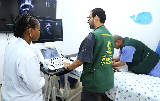 Daktari bingwa wa magonjwa ya moyo kwa watoto kutoka Kituo cha Mfalme Salman cha Misaada ya Kibinadamu kilichopo nchini Saudi Arabia Omar Almohzy akimfanyia mtoto kipimo cha kuangalia jinsi moyo unavyofanya kazi (Echocardiography – ECHO) wakati wa maandalizi ya kambi maalumu ya upasuaji wa moyo kwa watoto itakayofanyika kwa siku saba katika Taasisi ya Moyo Jakaya Kikwete (JKCI). Kambi hiyo itaanza tarehe 05 Septemba ambapo watoto 30 wanatarajiwa kufanyiwa upasuaji wa moyo.