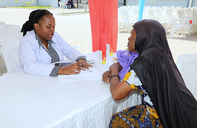 Hospitali ya Dar Group Agnes Mkama akimpima shinikizo la damu mwananchi